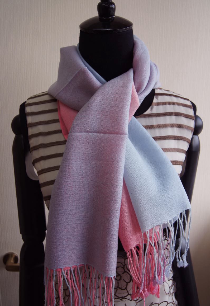 - パシュミナ100%英国”gradation”新作/Baby‐Blue~コーラル〇*:..azu00cpa