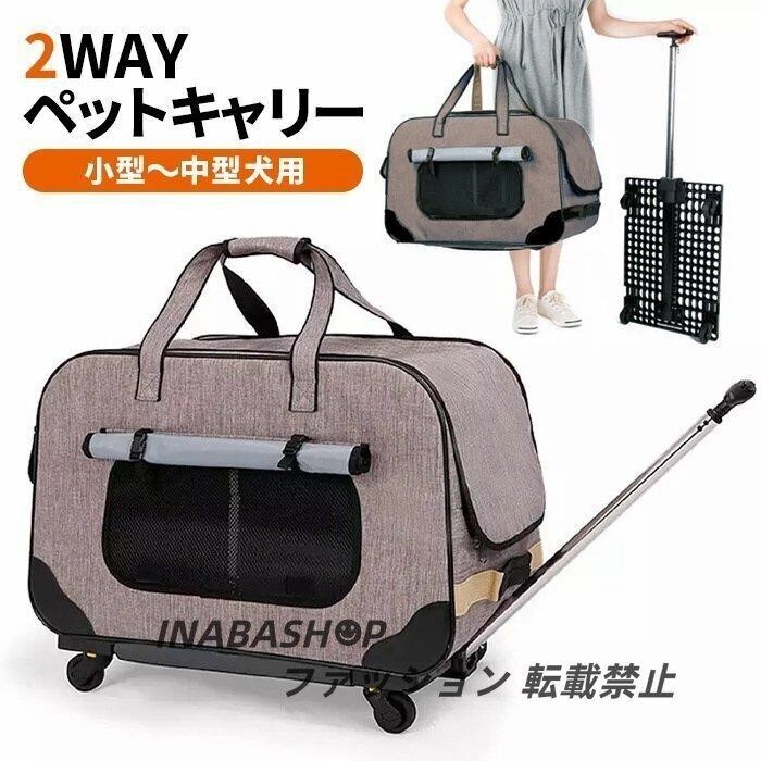 - ペットキャリーバッグ 2way 折りたたみ キャスター付き キャリーバッグ 犬 猫 小型犬 中型犬 ペットキャリーカート(グレー)