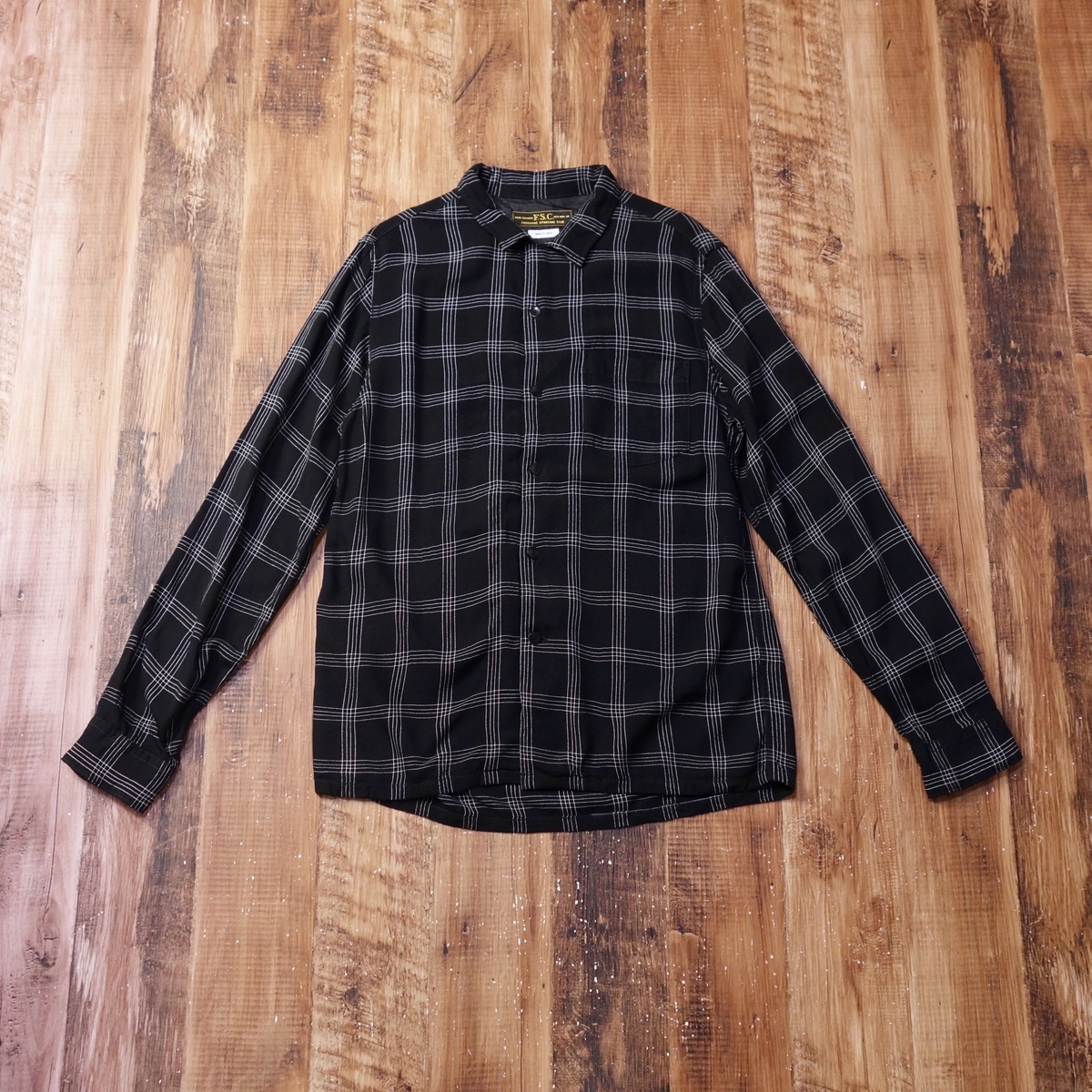 - フリーマンズスポーティングクラブ 長袖レーヨンチェックシャツ メンズ オンブレ 羽織り 春秋 日本製 3 ブラック ON39