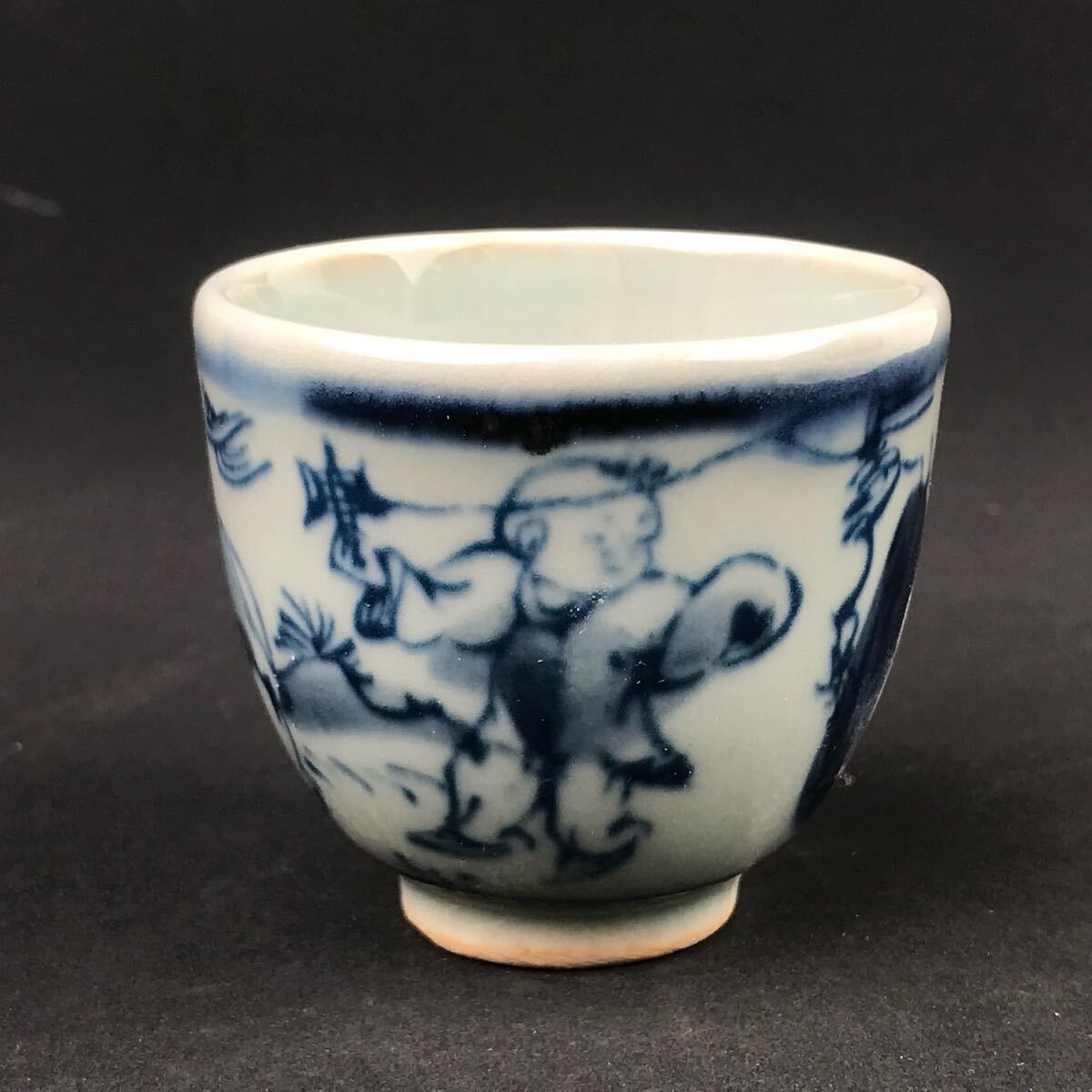 - 清代 青花杯 中国 古美術 茶道具 煎茶茶碗 茶盃 染付 青花 骨董 古美術 古玩 時代美品 湯呑 茶道具 時代品 ぐい呑み