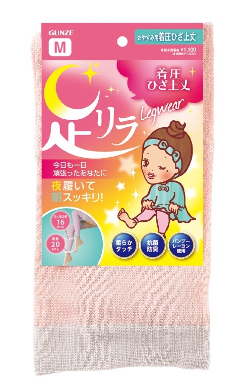 - GUNZE グンゼ 着圧靴下 足リラ おやすみ用 Mサイズ スモークピンク ナイトソックス オーバーニー 柔らかタッチ 着圧ソックス