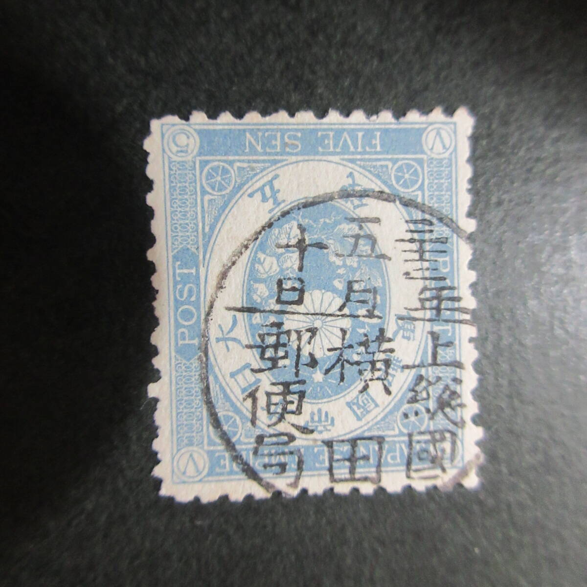 - 【小型丸一縦書印】小判5銭 33.5.10/上総國/横田/郵便局
