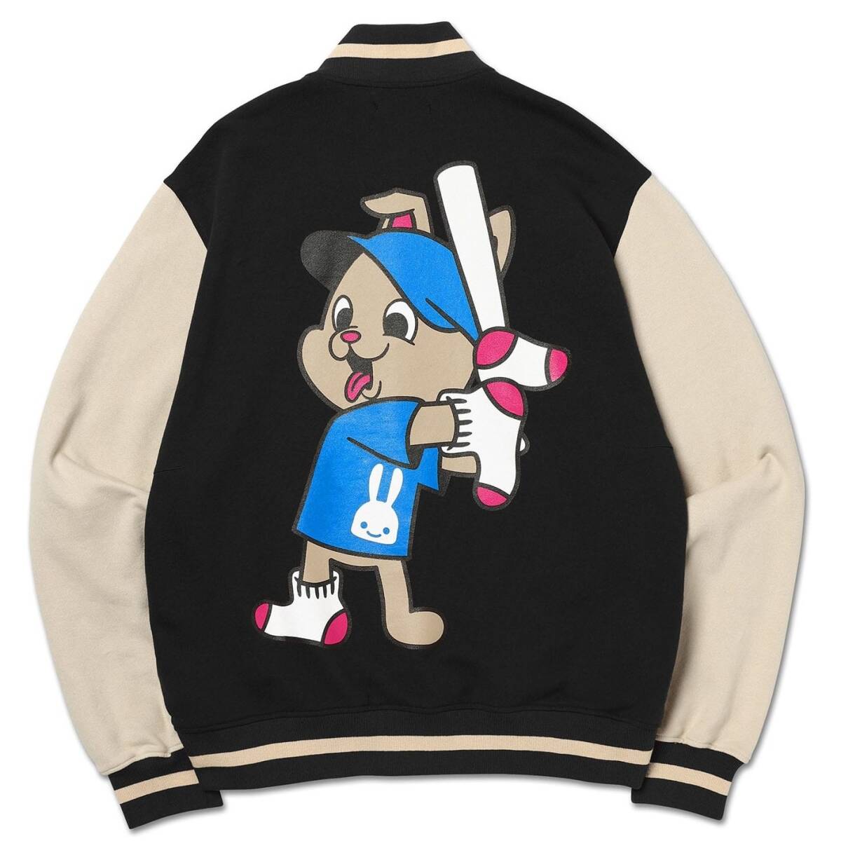 > 2022 日本製 CUNE OUTER『ドッグソックススウェットスタジャン』黒 長袖 前後プリント サイズ2・バスト約121cm※未開封品/商品タグ付き