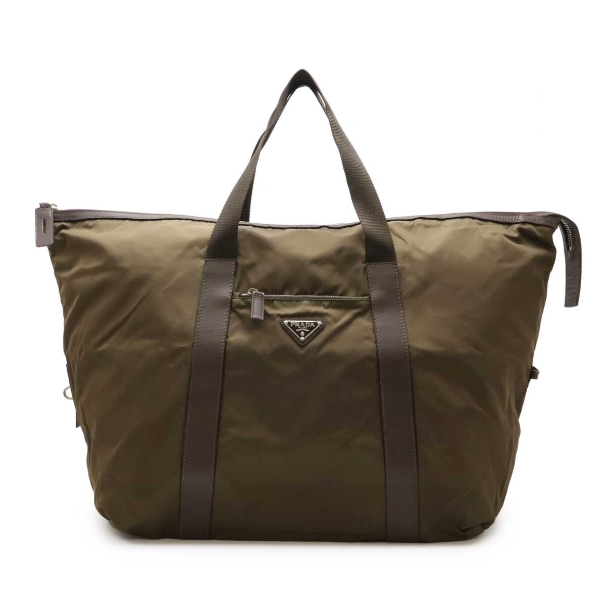 - PRADA プラダ トライアングルロゴ ボストンバッグ トラベルバッグ 旅行カバン ナイロン レザー カーキ ダークブラウン V49Z