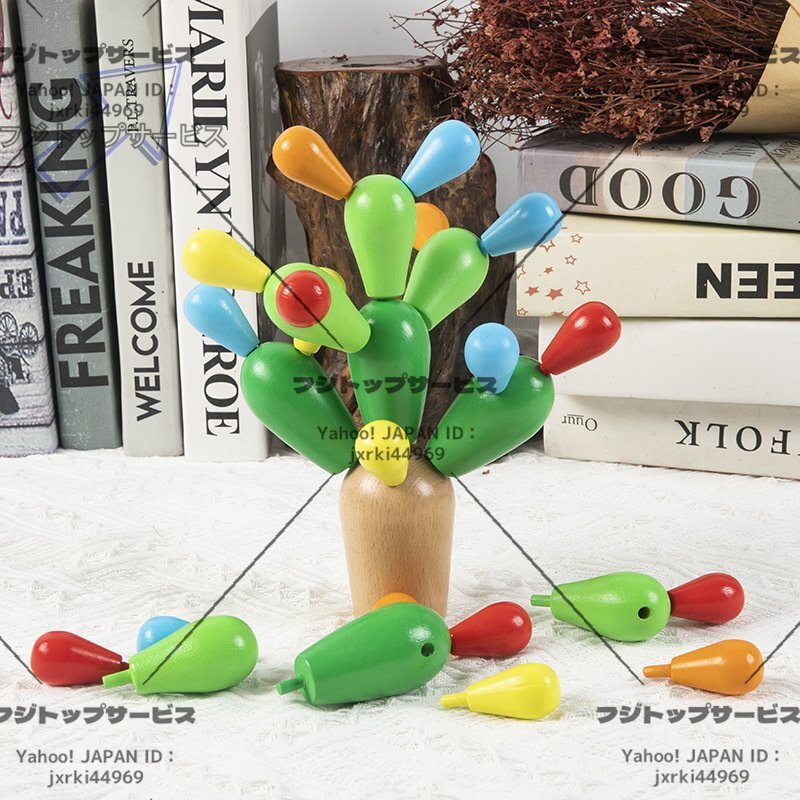- 新入荷 知育玩具 積み木 サボテン バランスゲーム 木 手先器用 色認識 木製パズル 赤ちゃん 幼児 おもちゃ プレゼン