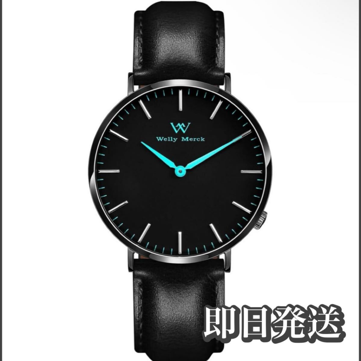 > 大特価 新品 未使用 メンズ腕時計 サファイアガラス レザーベルト 黒 かっこいい クォーツ ブラック文字盤 カップル プレゼント ギフト