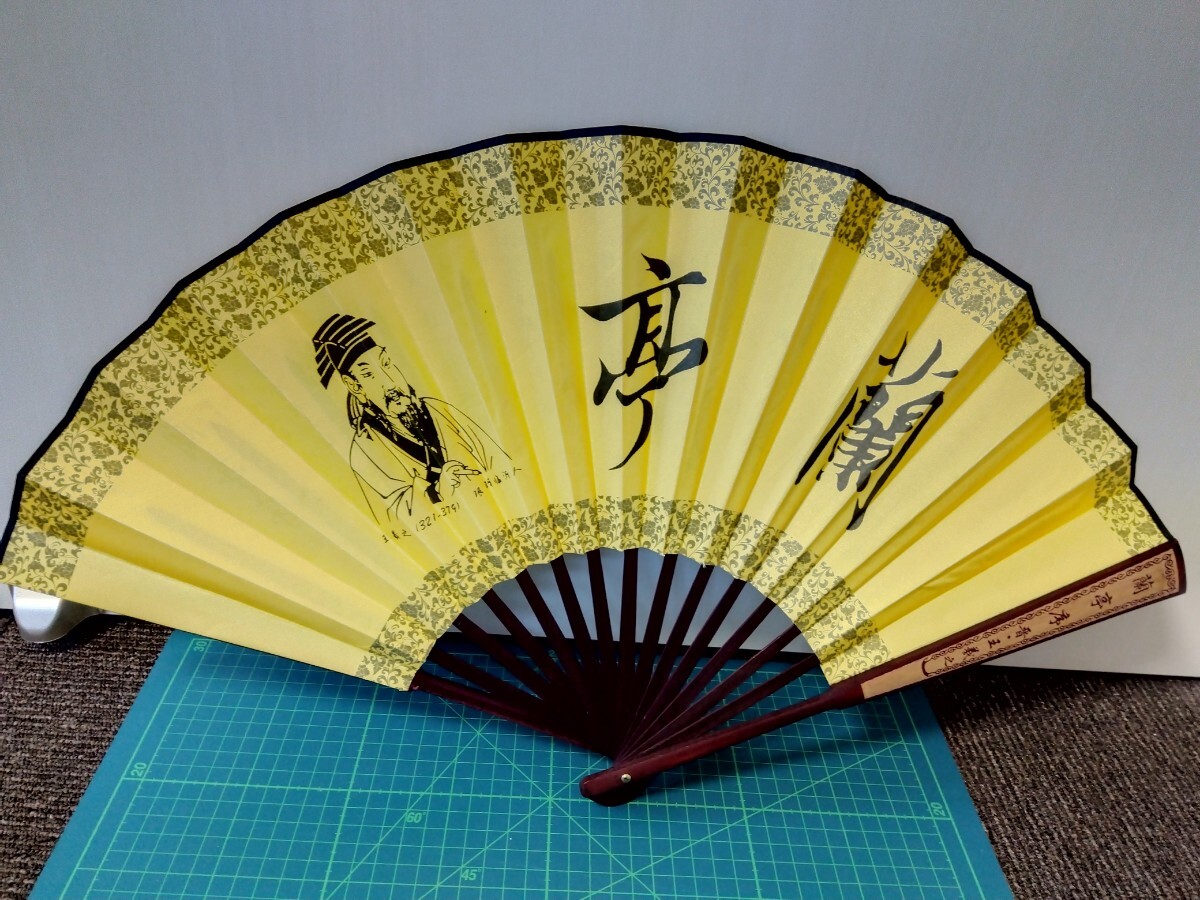 - 「蘭亭序」王羲之 伝統的な黄色い扇子 漢字と絵画付き 中国書扇子 絹竹