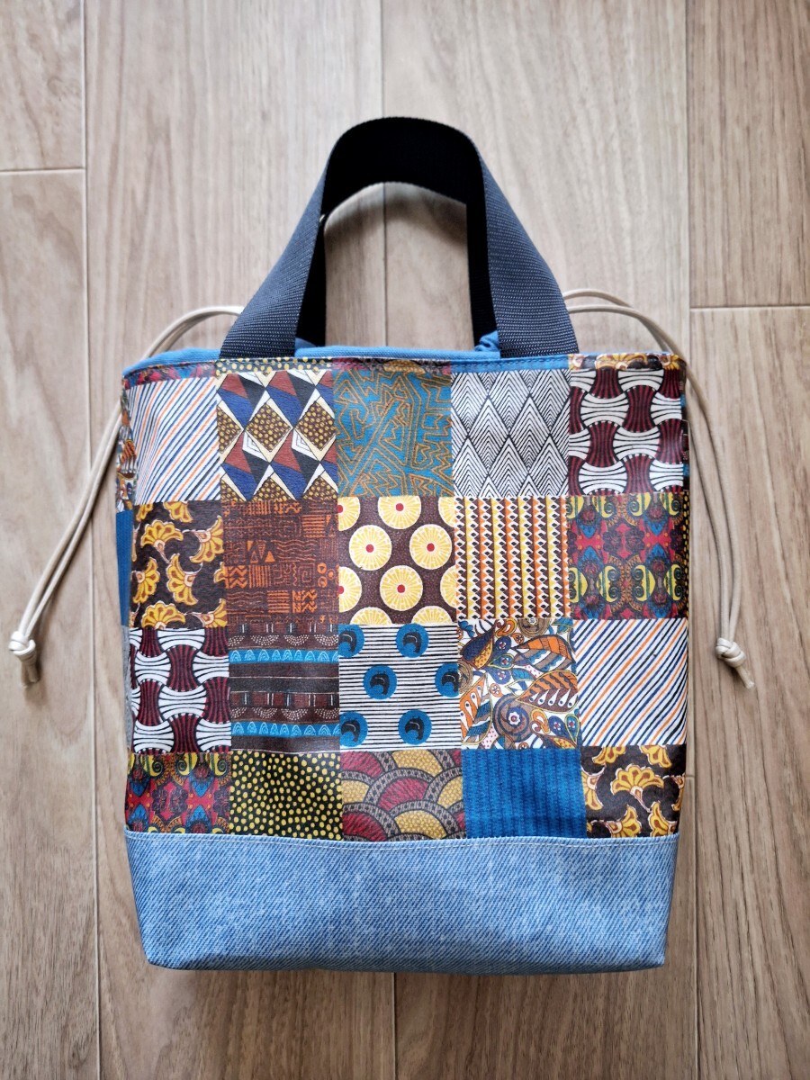- ハンドメイド 巾着 トートバッグ ブルー系