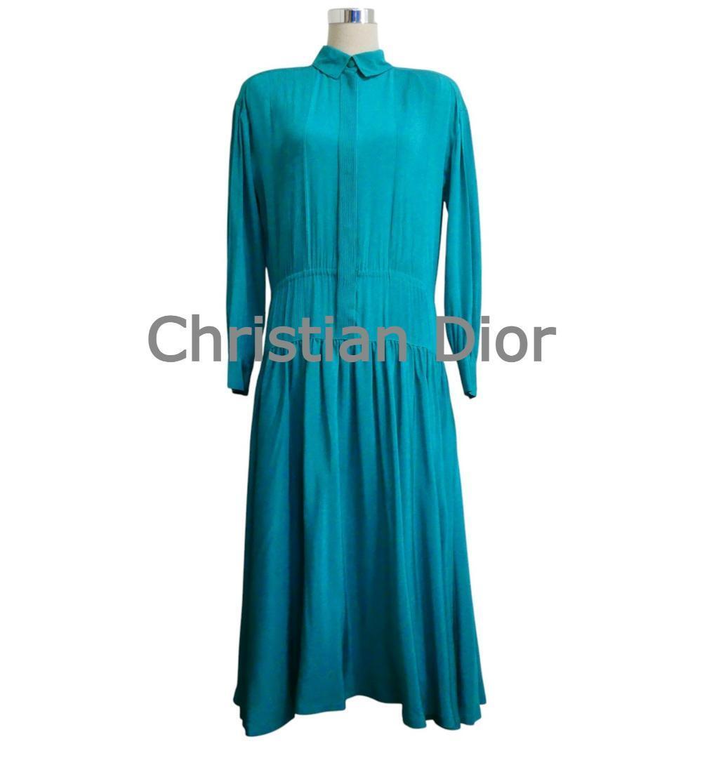 - 美品 Christian Dior クリスチャンディオール サイズ9 シルク100% プリーツ ロング マキシ フレア ワンピース ドレス グリーン