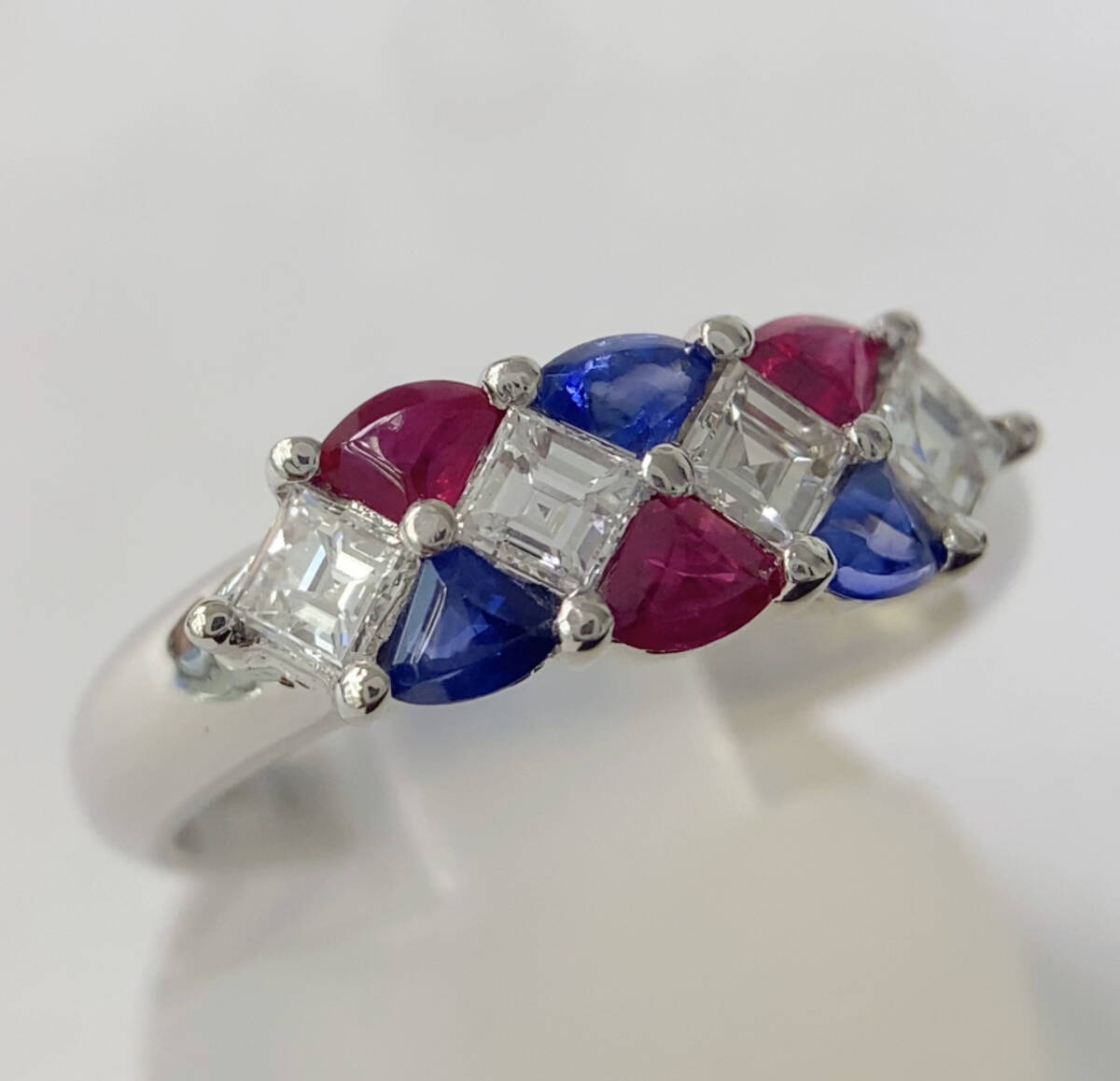 - 素敵 PT900 天然ルビー0.45ct 天然サファイア0.48ct 天然ダイヤモンド0.49ct 指輪 リング 約12号 約5.4g