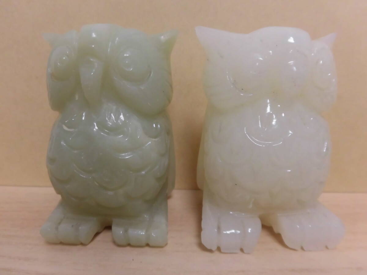 - 中古品 現状品★石のふくろう 彫刻 ふくろう フクロウ 置き物 石 白&薄緑★2個セット