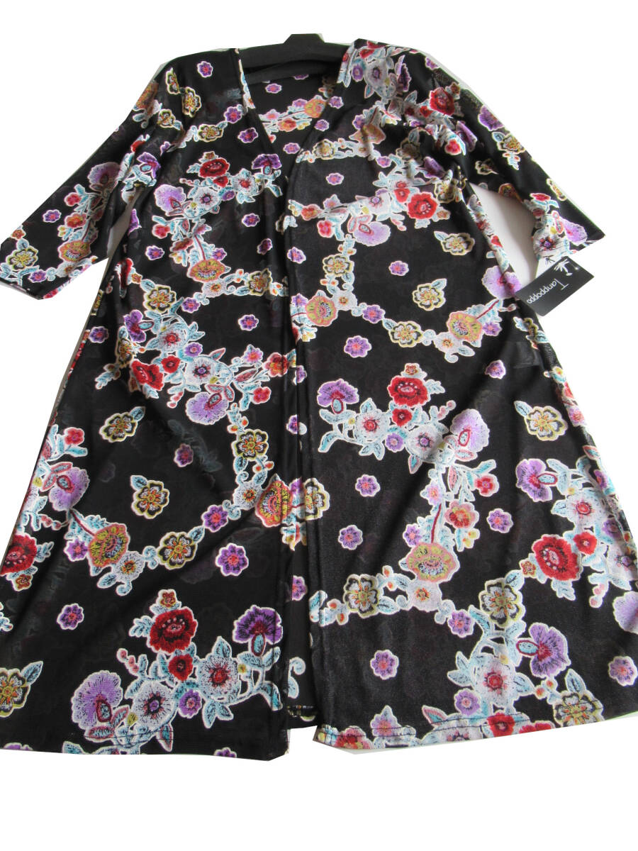 - レディース 春夏モデル Aライン5分袖ストレッチ花柄トッパー 特価セール ゆったりサイズ ブラック bj