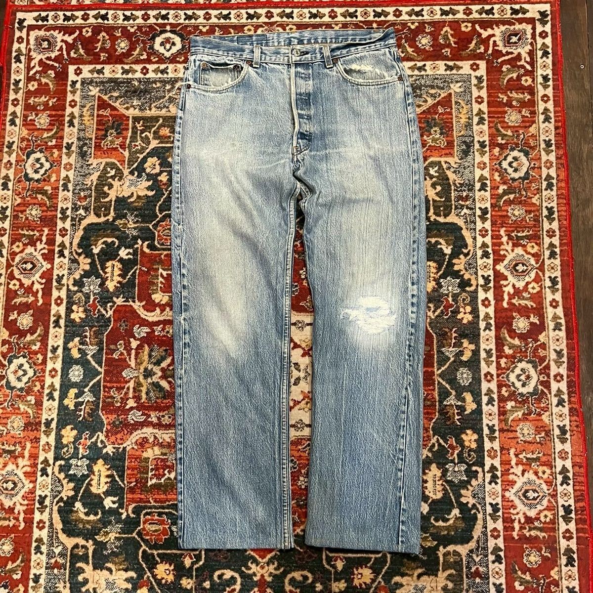 > 90s USA製 Levi's 501 ヴィンテージ デニムパンツ W86cm W36 L36 縦落ち グランジ ダメージ ジーパン リーバイス 653刻印 インディゴ 80s