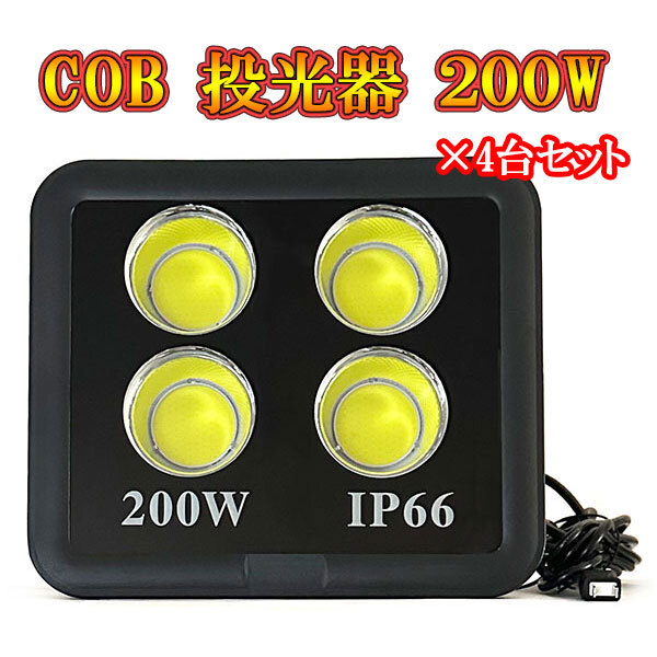 - LED投光器 COBチップ 200w プラグ付コード 防犯 防災 街路灯 外灯 駐車場 ガレージ 大型 白色発光 4台セット