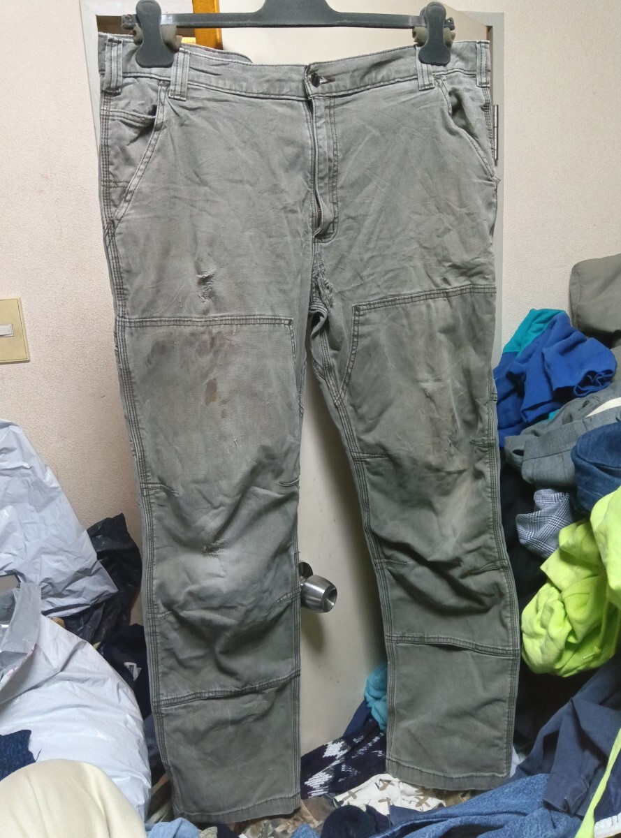> 送料無料 希少 カーハート ダブルニー ペインター カーペンター パンツ W38 L32 グレー Carhartt pants 古着 ビンテージ Painter overall