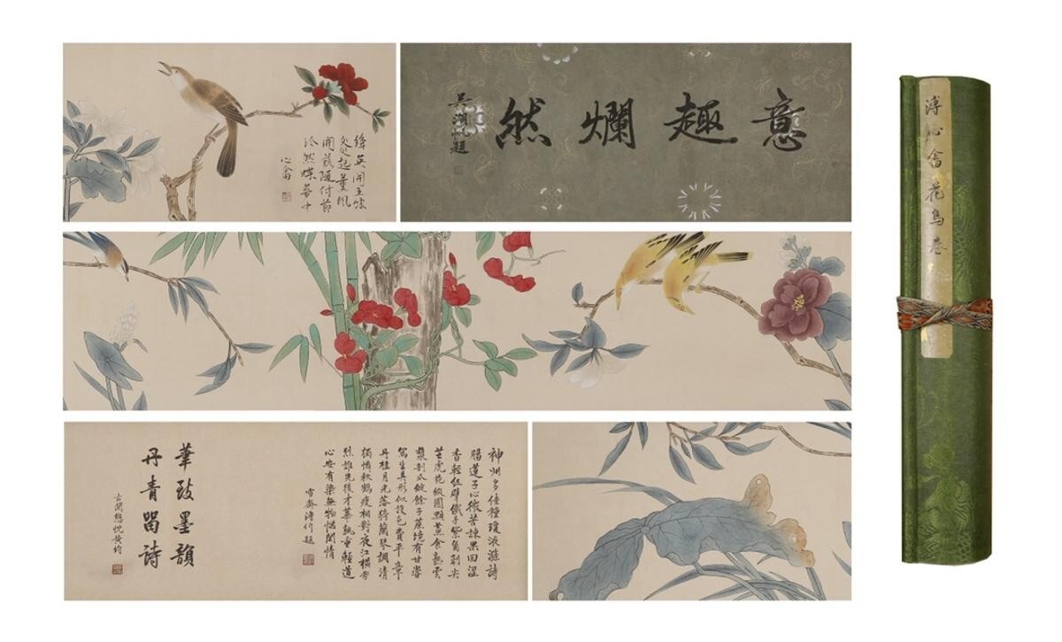 - 「溥儒畫 花鳥図手巻」近代画家 肉筆紙本【仁】掛け軸 書画横軸 巻き物 中国書画 古美術 蔵出