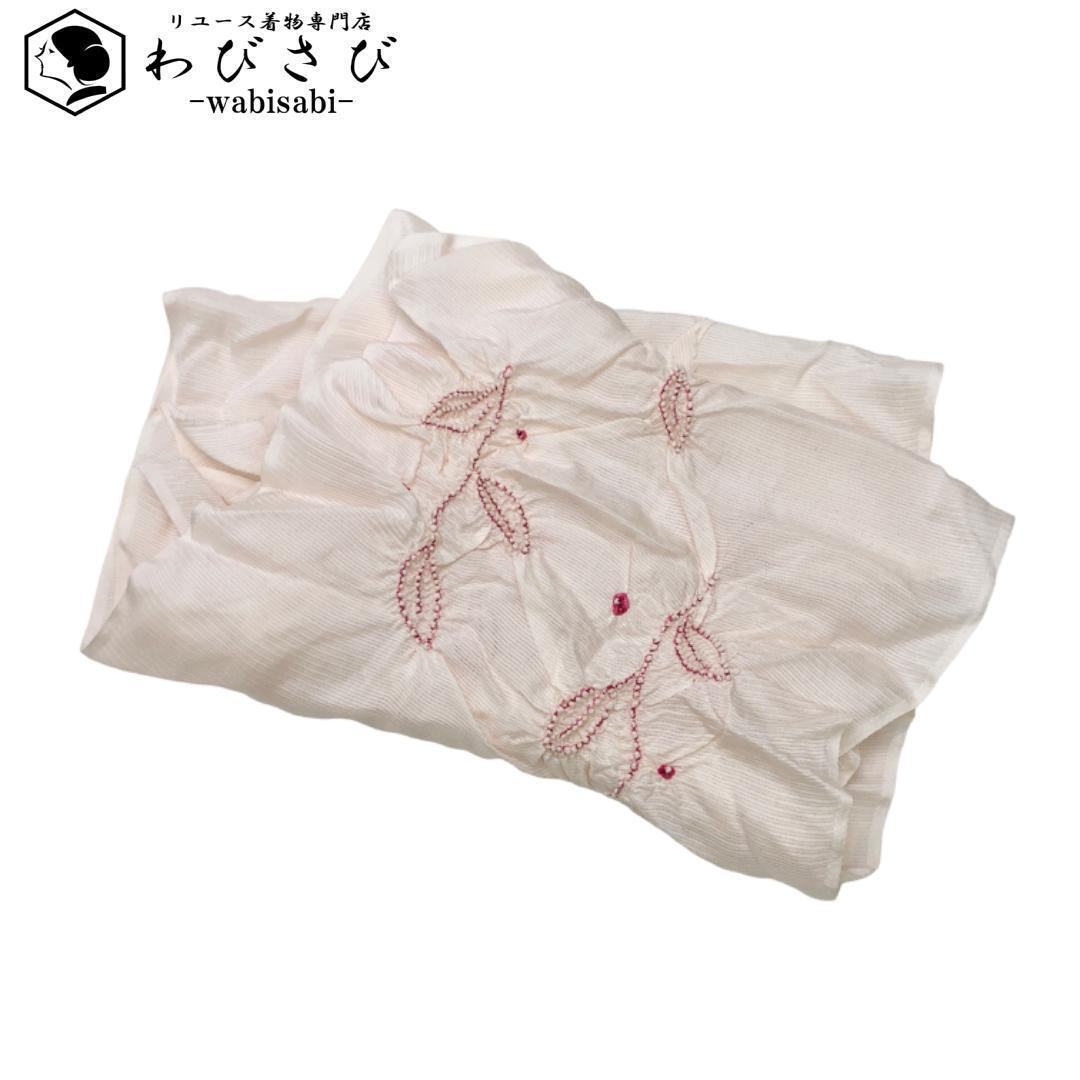 > 和装小物 帯揚げ 正絹 夏物 絽 絞り柄 葉模様 桜色 C-5816 着物 きもの kimono 和服 和装 中古 リサイクル着物 【送料無料】