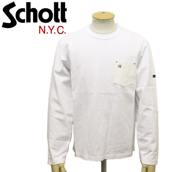 - Schott (ショット) 3103148 LEATHER POCKET L/S T-SHIRT レザーポケット ロングスリーブ Tシャツ 01WHITE S