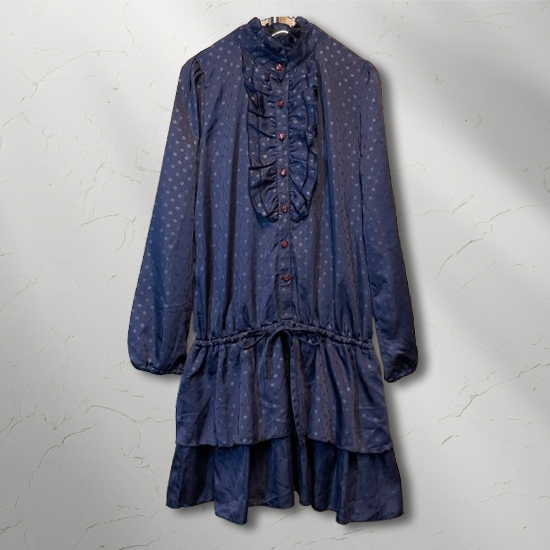 > NATURAL BEAUTY ナチュラルビューティー ネイビー同色ボット フリル ティアード ハイネックワンピース Sサイズ