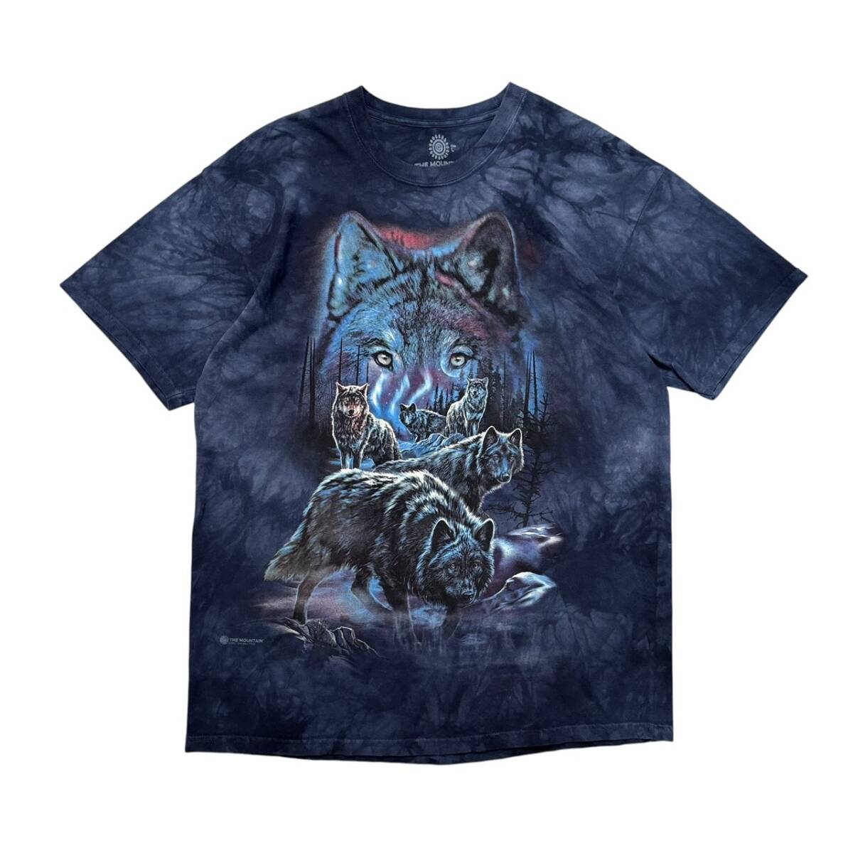 - 【L】古着 THE MOUNTAIN アニマル アート Tシャツ オオカミ ウルフ タイダイ ネイビー