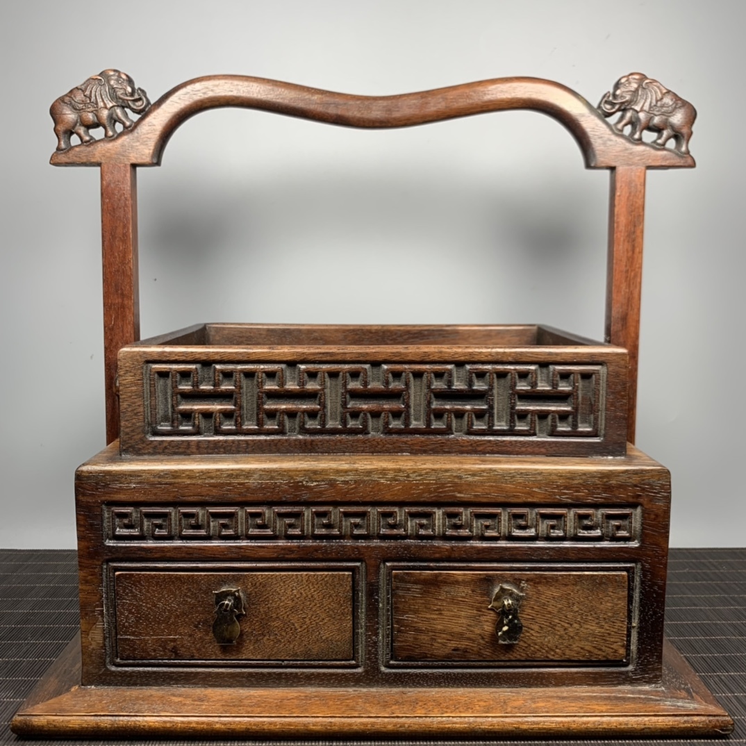 - 唐物 清 非洲花梨木 吉祥如意 提盒 牛毛紋細膩明顯 置物 木製 極細工 中国美術品 時代物 中国古玩 骨董品 D65
