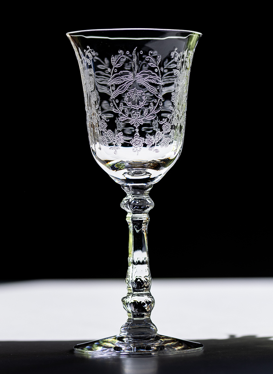> 1940年~ ヘイシー グラス オーキッド 蘭 エッチング クリスタル クラレット リキュールグラス 酒 ラン 花 カクテルグラス ビンテージ