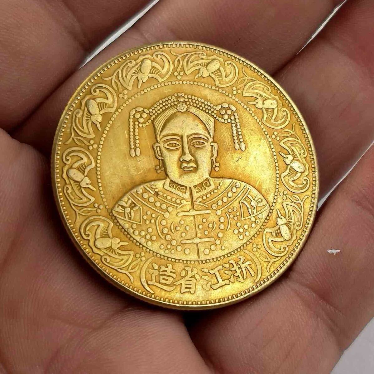 - 極美品 大清 金貨 コレクション 慈禧 鳳凰 光緒乙酉年製 金貨 収納ケース付き 硬貨 貿易金 壹圓 古銭 コイン 収蔵品 中国