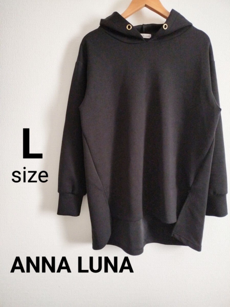 - 送料無料 美品 Lサイズ ANNA LUNA きれいめ パーカー フーディー トップス スウェット アンナルナ ブラック 黒 長袖 きれいめカジュアル
