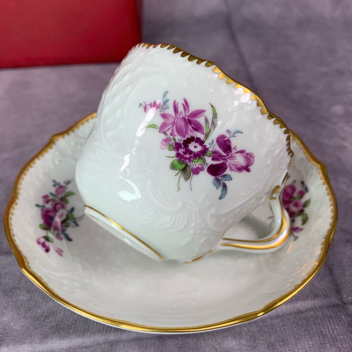 - 高級ライン マイセン Meissen カップ ソーサー 金彩 レリーフ ベーシックフラワー 花柄 コーヒーカップ ハンドペイント 美術品 西洋美術