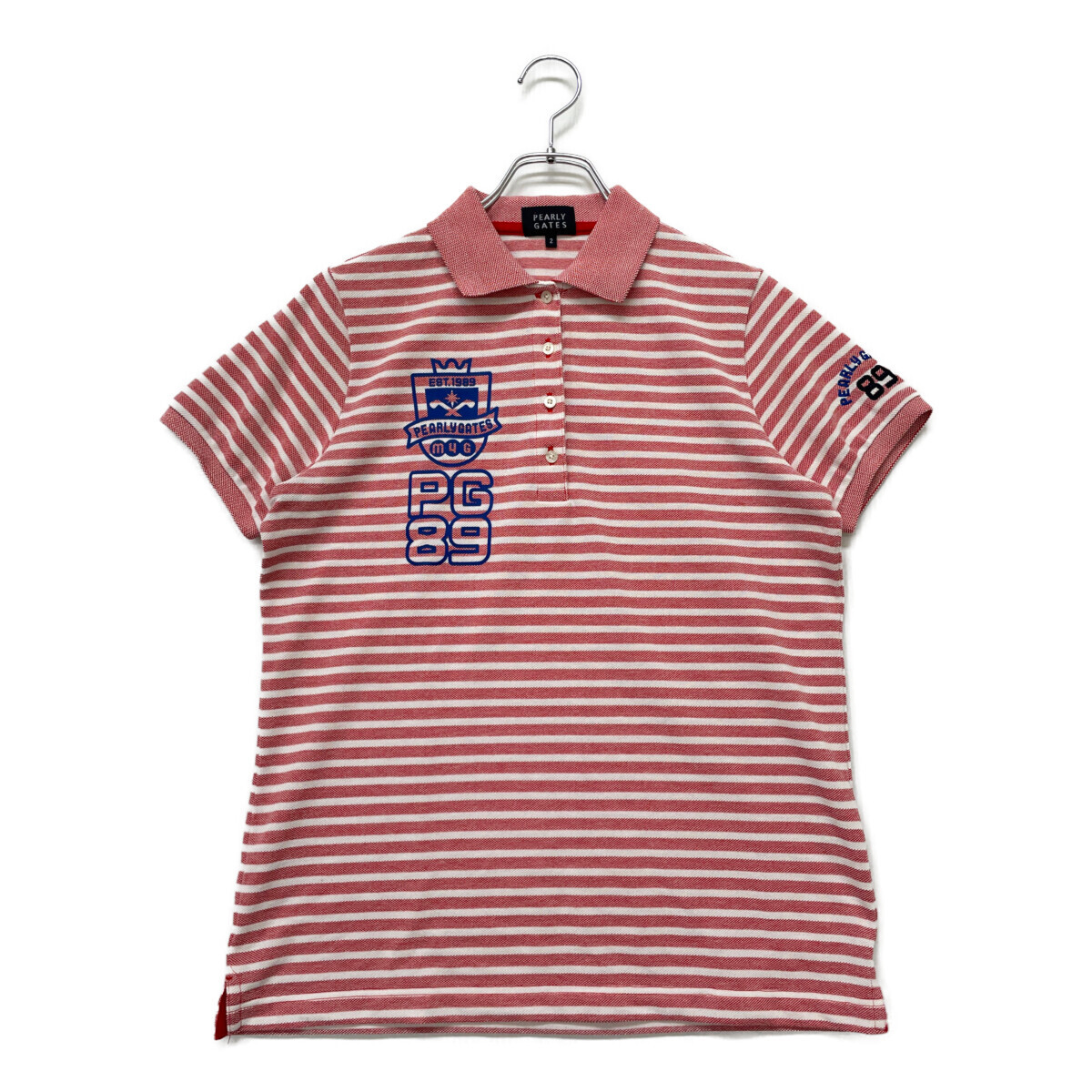 - coco 中古【値下げ】 パーリーゲイツ PEARLY GATES レディース 半袖ポロシャツ 2(L) 赤×白 ボーダー レターパックプラス発送可 94983