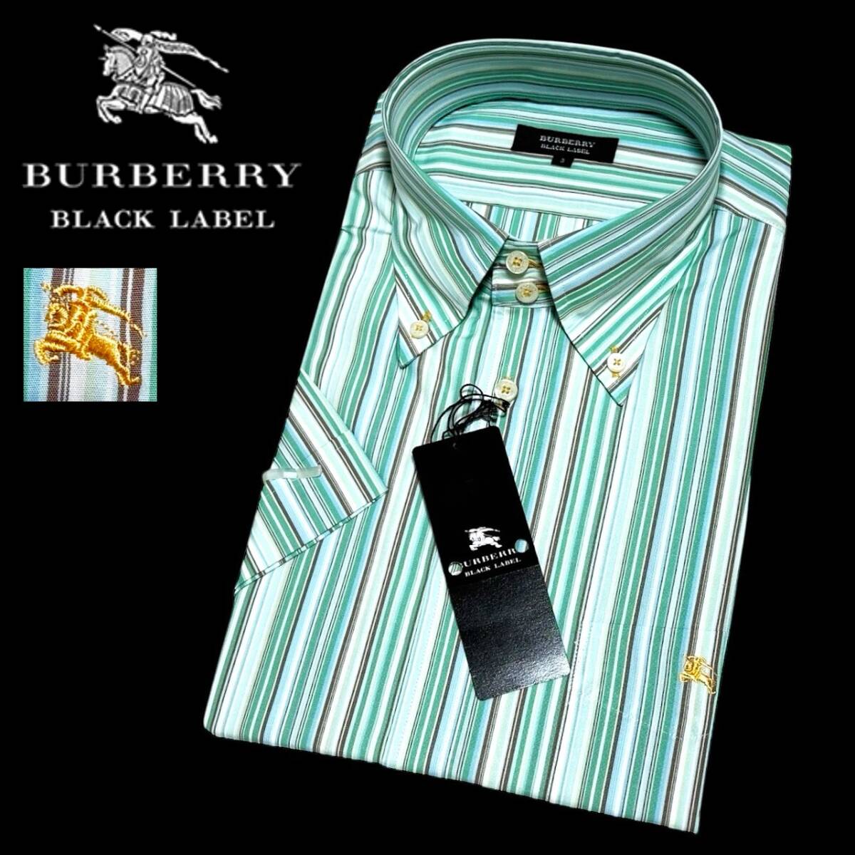 - 希少! 新品 バーバリーブラックレーベル BIGホース刺繍 黒タブ マルチストライプ柄 BD 半袖 シャツ ドレスシャツ 3/L BURBERRY BLACK LABEL