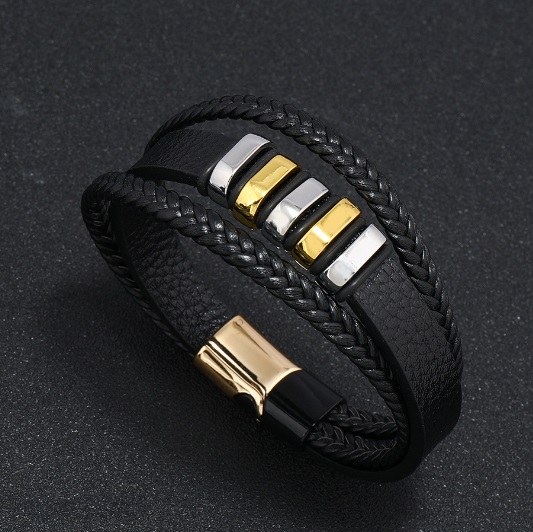 - レザーバングル 新入荷 メンズ ブレスレット 編み込み チタンステンレス 紳士 アクセサリー 総長20.5センチ /ミックス