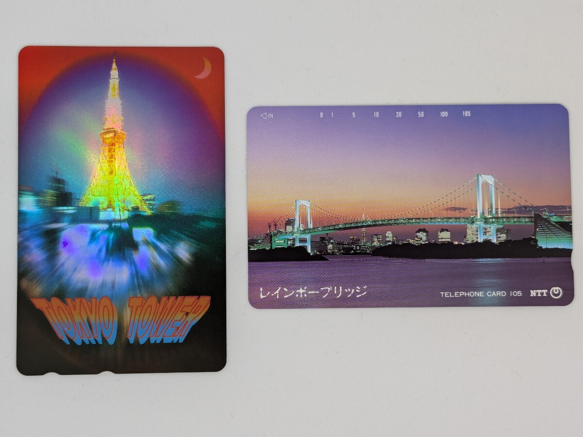 - 【未使用:送料無料】「東京タワー」「レインボーブリッジ」テレホンカード 105度数1枚 50度数1枚