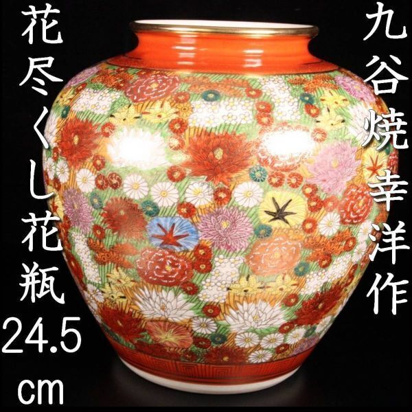 > 【爨】古美術品 九谷焼 幸洋作 花尽くし花瓶 24.5cm 唐物骨董 [R111]PO/23.2/FM/(140)
