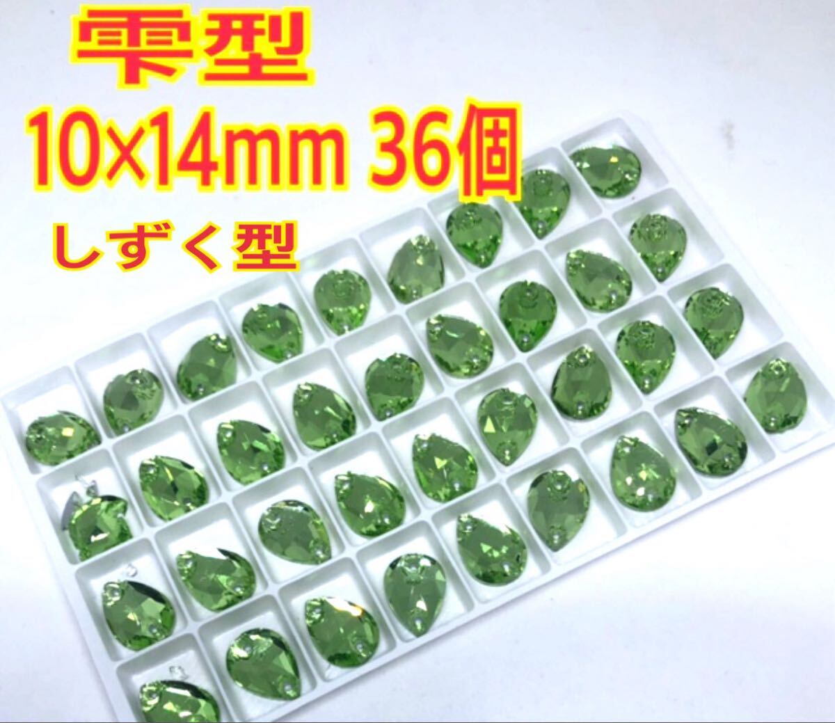 > 10×14mm 36個しずく型ガラスビジュー 高輝度 衣装装飾 レオタード 新体操 ソーオン グリーン