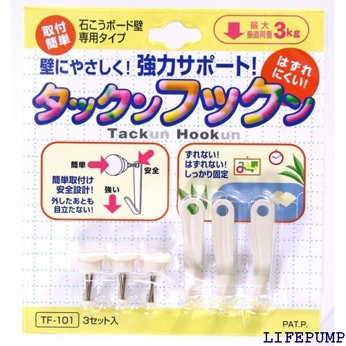 - WAKAI 石膏ボード壁専用 タックンフックン 3セット入 白 9344