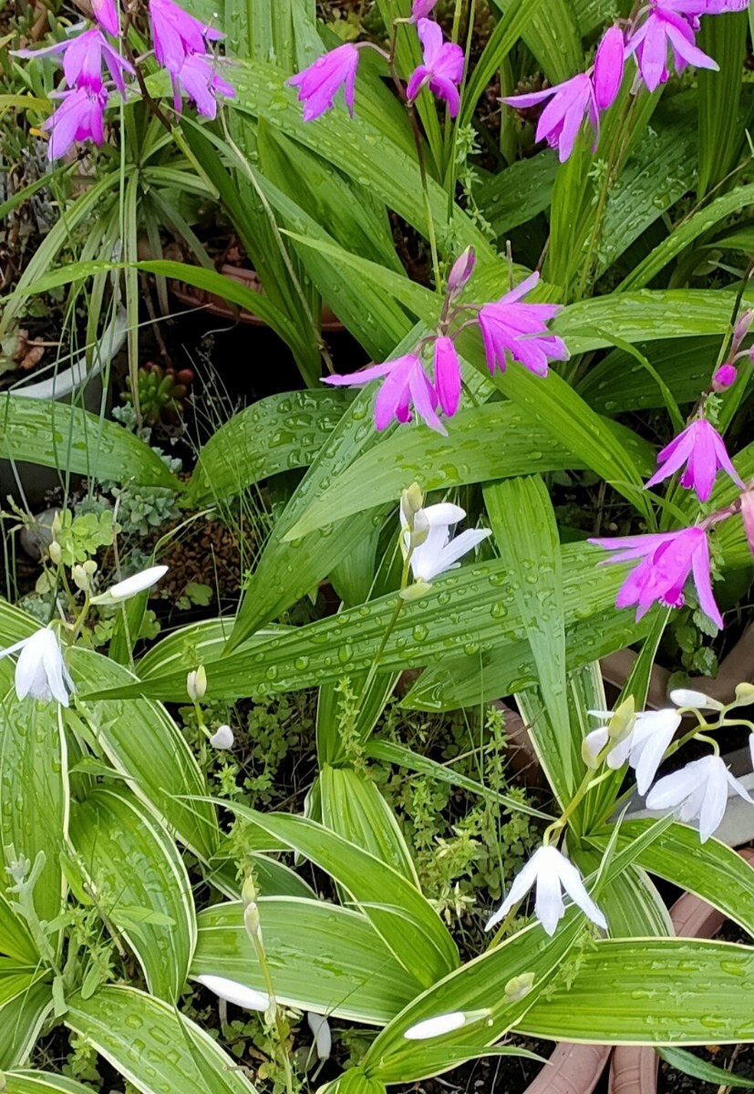 - 班入り白紫蘭1苗・むらさき紫蘭1苗 根付き 地下球
