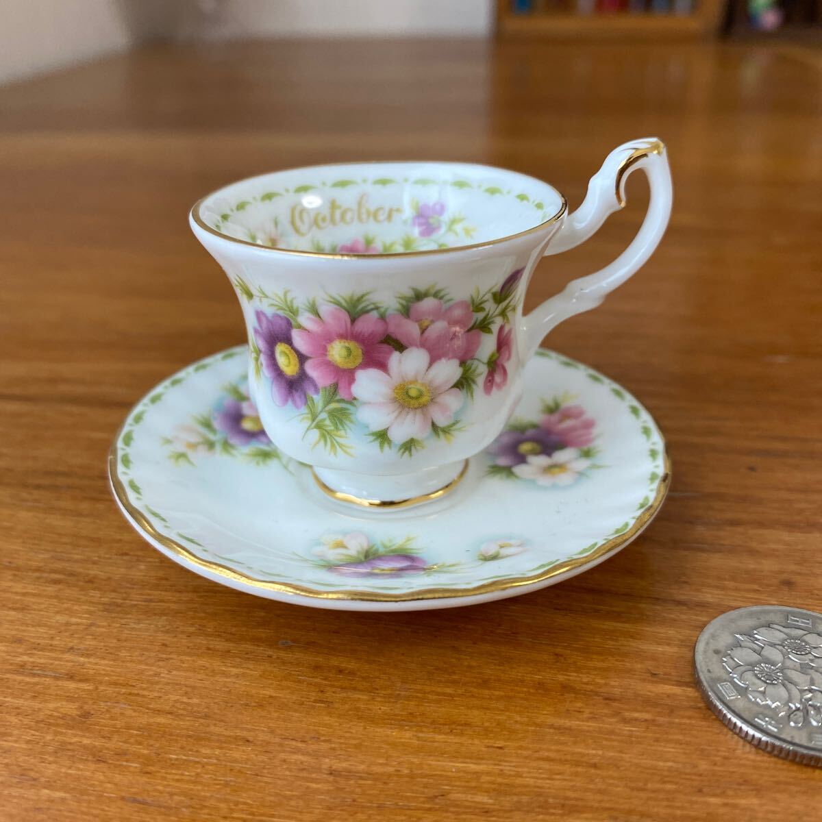 - ロイヤルアルバート フラワーオブザマンス ミニチュア カップ ソーサー 10月 コスモス 英国 イギリス ヴィンテージ ROYAL ALBERT