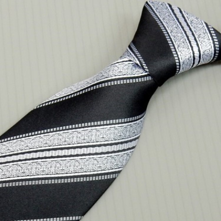 - モーニング用ネクタイ 黒系ドビー縞 甲州織 日本製 ポリエステル100% メール便