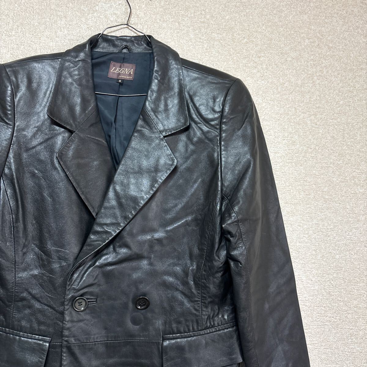 - 【ユニセックス】 80s LEGNA レグナ ダブルジャケット テーラード レザージャケット 9号 メンズM レディースLサイズ相当 山羊革