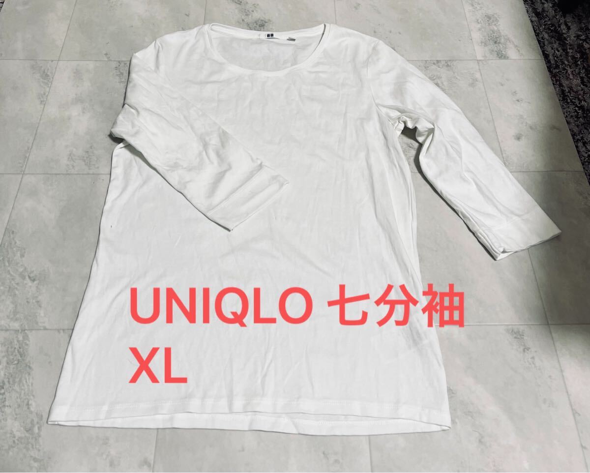 > UNIQLO ユニクロ コットンフライスクルーネックT(7分袖) ホワイト 白 XLサイズ