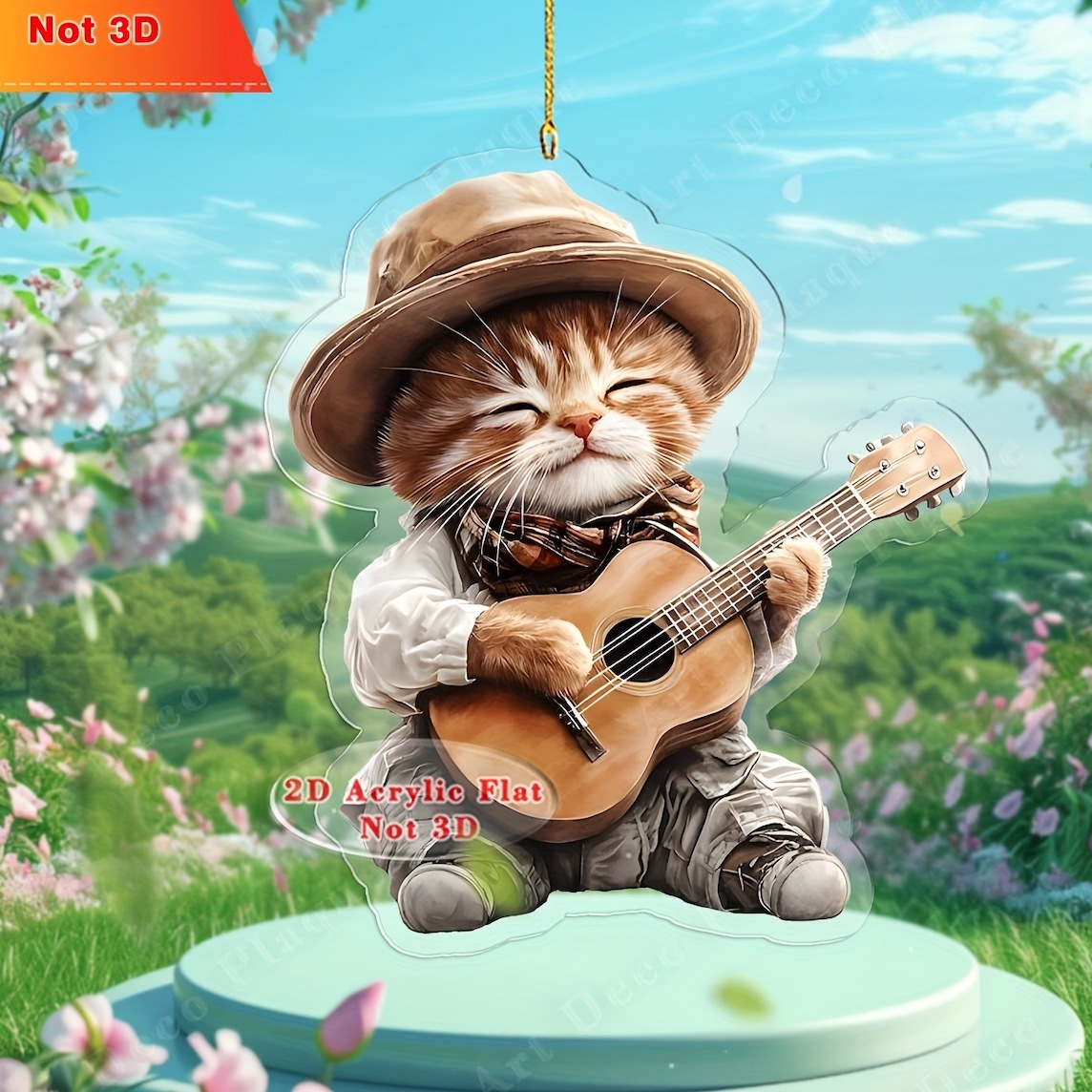 - アクリル キーホルダー ギターを引くネコ おじさん 猫 大きめ 8cm 車 平面 2D おしゃれ バックミラー かわいい おもしろ アニマル t6372