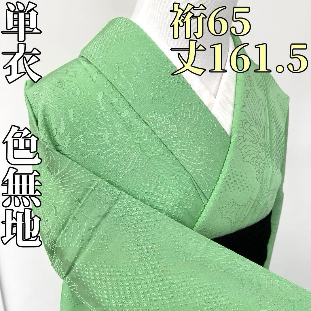 > 【着物と帯 時流】ヒ25684◆正絹 単衣 色無地◆地紋 糸菊 ライムグリーン