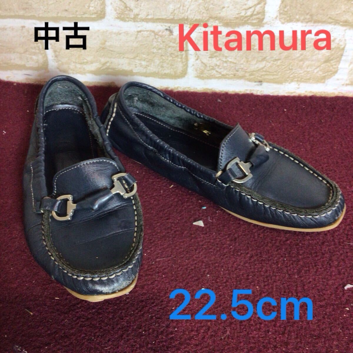 - 【売り切り!送料無料!】A-345 Kitamura!本革シューズ!22.5cm!ネイビー!スリッポン!おしゃれ!柔らかい!履きごごち良い!中古!