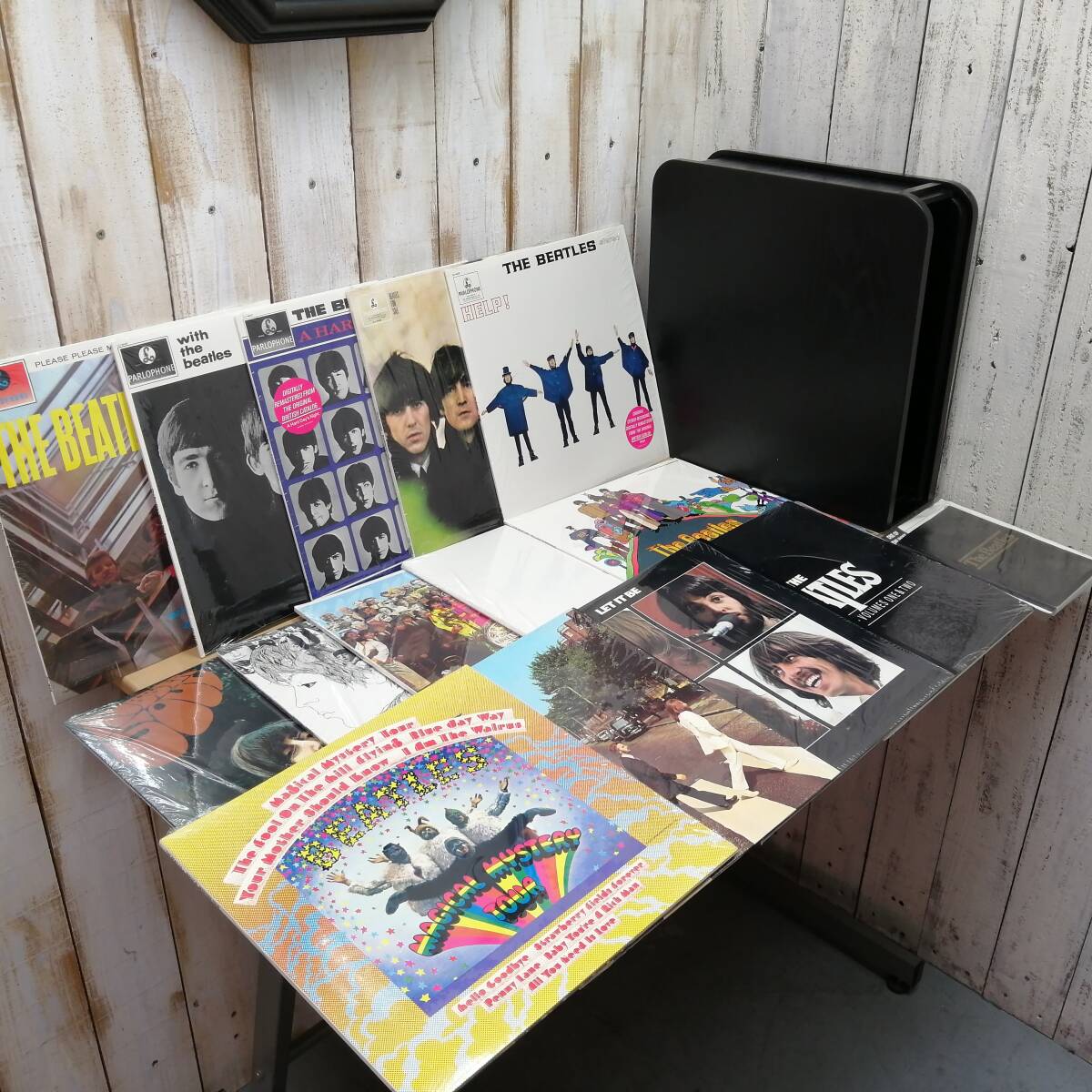 - ■25050912v The Beatles Collection WOODEN BOX ビートルズ・コレクション UK 14タイトル 1988年 限定盤 蛇腹木製レコードケース入