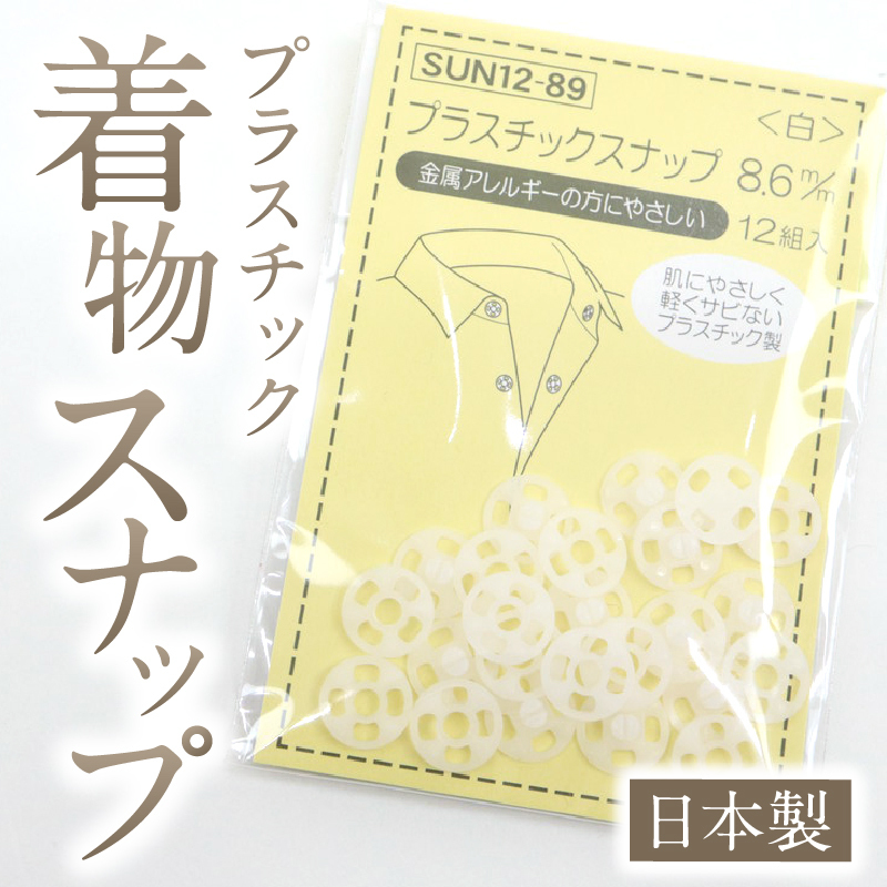 > 【針子】プラスチック 着物スナップ 8.6mm 12個 衿留め 衿スナップ ボタン 洋服 着物 衿 袖 プレススタッド 着付 錆びない 和装小物