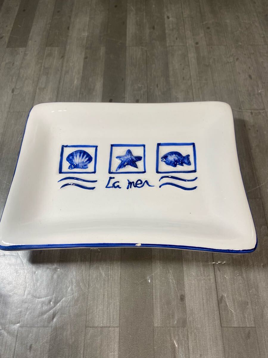 - 海モチーフ トレイ プレート 角皿 皿 飾り皿 欠けあり お皿 石鹸置き など かわいい 爽やか ブルー ホワイト モチーフ 海 魚