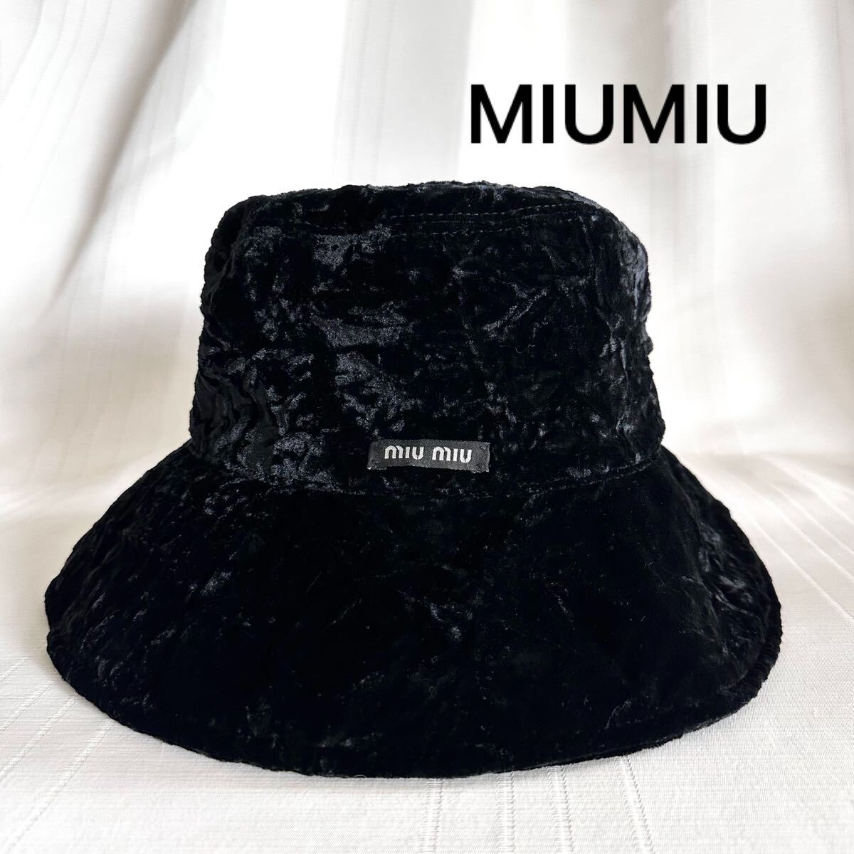- MIUMIU ミュウミュウ バケットハット 帽子 ハット ロゴ入り ベルベット ベロア ブラック 黒 レーディス 極美品