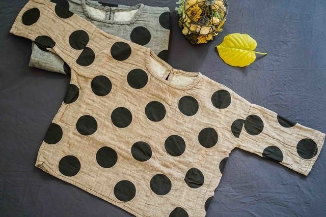 > 丸々/ドット柄 榛色/ベージュ♪ キッズ服/子ども服【綿麻二重ガーゼ】長袖Tシャツ男女兼用120cm・水玉