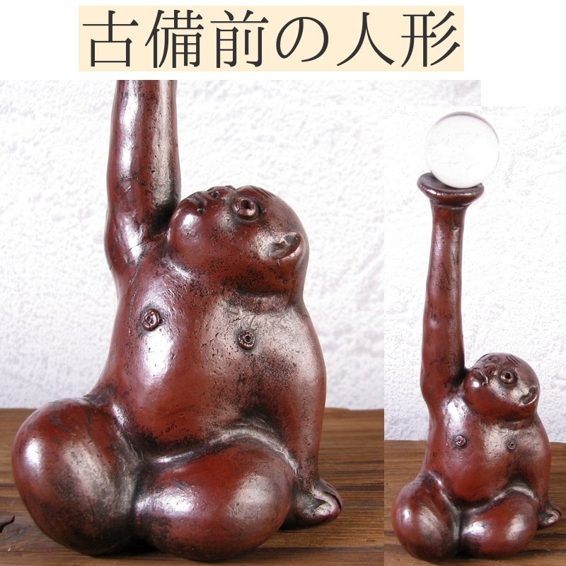 - 古備前 玉を持ち上げる人物の人形 高さ:16cm 時代箱付/24i070